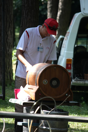 Итак расскажу что было в казане в субботу и чего там не хватало:) Было: Лук репчатый с пол кило. Сладкий молотый красный перец - две пачки. Чеснок - одна головка. Мясо свыня (классический вариант из голени коровы) 2,5 кг (это многова-то, но не мешает :) Помидоры - 0,5 кг Морковка - 0,5 кг Перец болгарский (лучше всего самый простой светло-зелёный) 0,5 кг. Картошка - 0,5 кг Сельдерей - одна небольшая головка (не обязательно). Eros Pista (очень острая венгерская аджика, в киеве не продаётся :( - 1-2 ст. ложки. чего не хавтало: меленый тмин - 1-2 ст. ложки. Лук - полукольцами жарим до приятного цвета на большом огне!!! Кидаем всю паприку и постоянно мешаем пару минут, что бы паприка поджарилась. Если паприка пригорит - выкидывайте всё и поновой. Кидаем мелко нарубленный чесной и продолжаем мешать ещё минуту. Кидаем нарезанное кубиками мясо и тут же наливаем немного воды так, что бы покрыло мясо. Делаем меньше огонь и тушим в зависимости от мяса. Свыню - меньше (5-10), корову - дольше (10-15). Кидаем морковку тушим 5 мин. Дальше помидоры и болгарский перец (10 минут). Доливаем воды до полного объёма и кидаем специи (10-15 минут). Кудаем картошку и сельдерей (всё кубиками) и варим до готовности. Вроде всё. |
