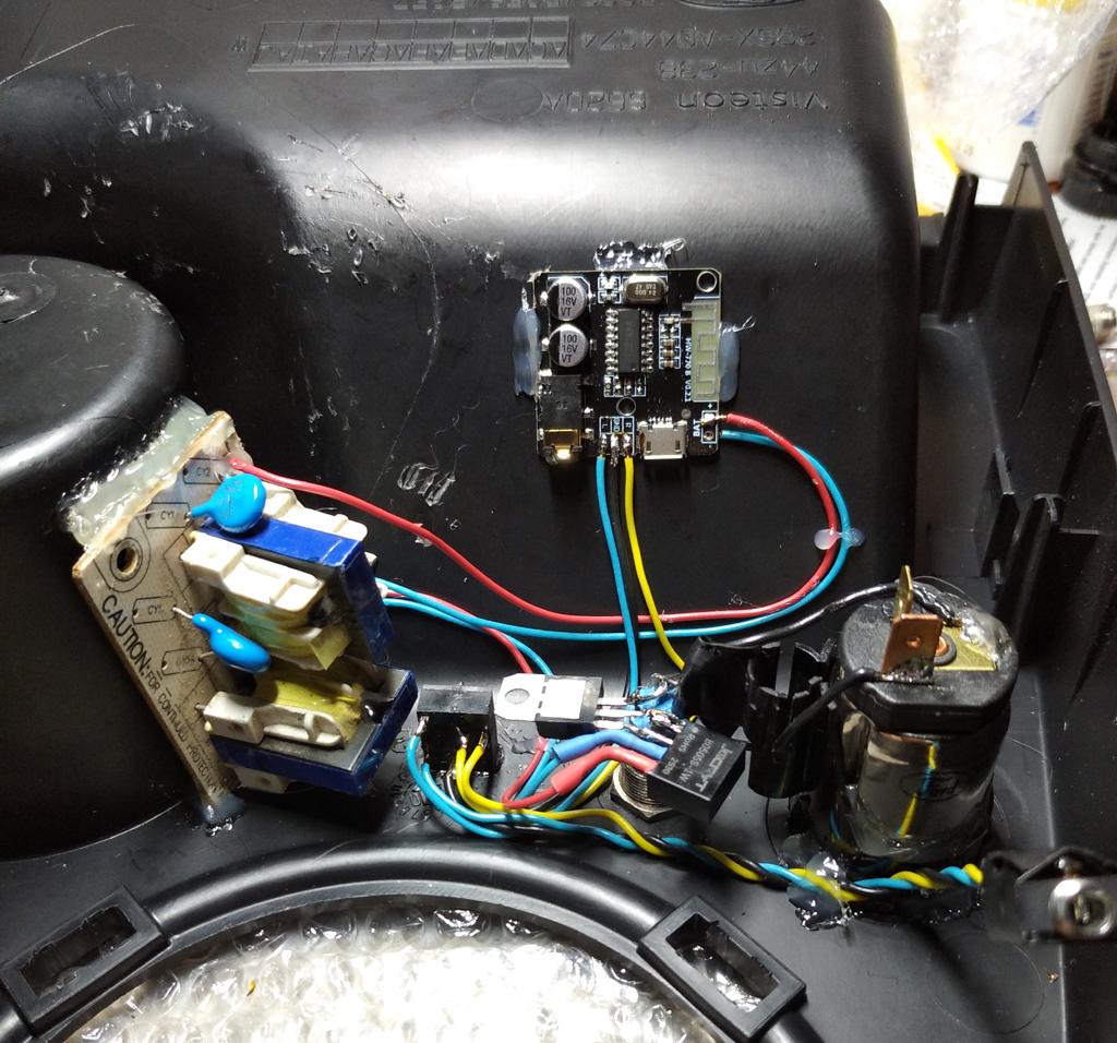 Приїхав з Китаю модуль B0505S-1W поставив після мікросхеми живлення 7805, фільтр вирізаний з комп'ютерного блока живлення залишив, поставив між модулем B0505S-1W та платою блютуз, можливо працювало б і без нього, але нема бажання зайвий раз переробляти. Як результат абсолютно ніяких сторонніх звуків при роботі AUX, чи то з увімкненим модулем чи ні, завад від генератора та модуля ДХО також нема. https://slavuta-club.info/wp-content...s/pub/0294.jpg |