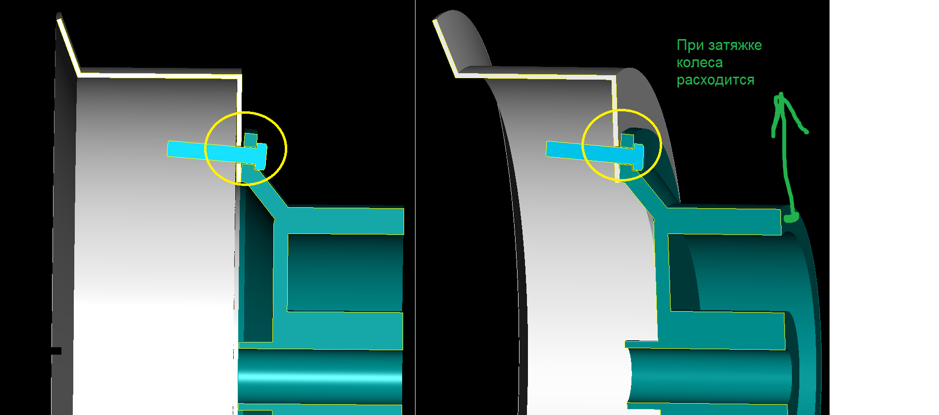 Изобразил то что имеют ввиду вышепищущие Логично, но деформаций там таких не может не должно быть... Скорее колесный диск вывернет...